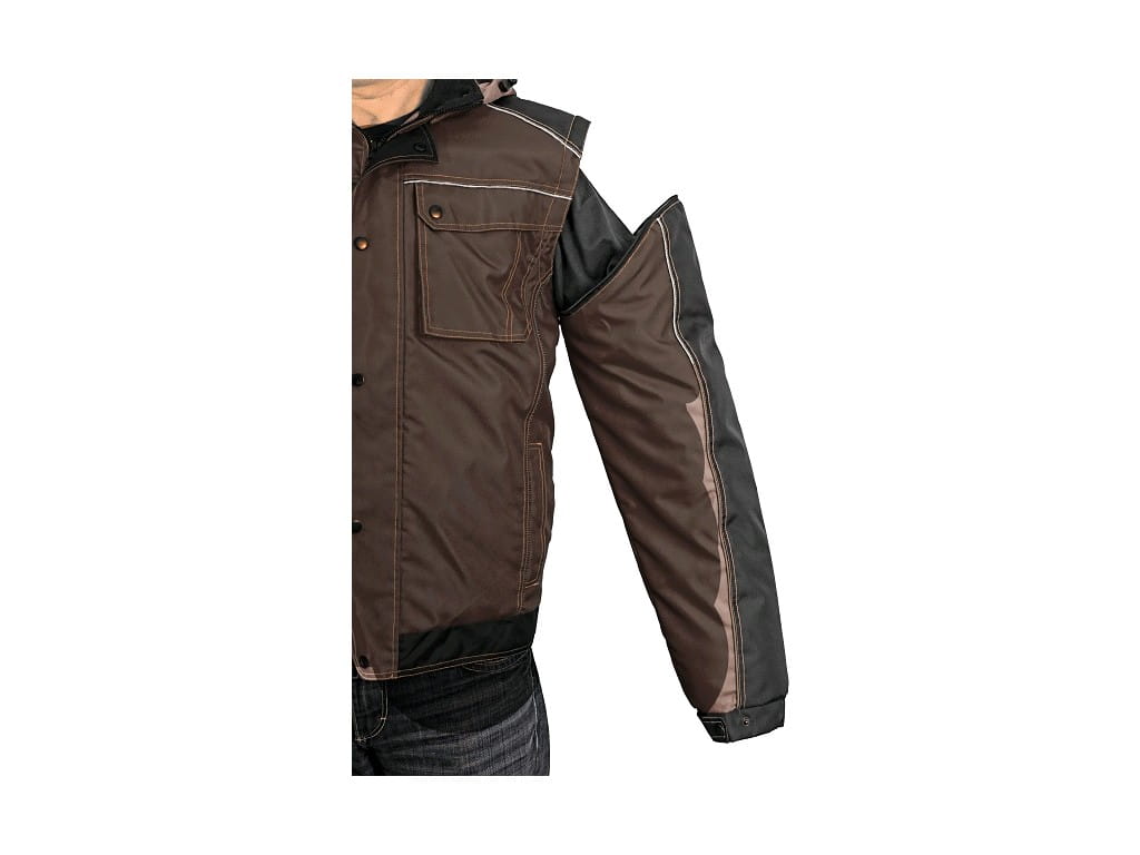 Wysokiej jakości, bardzo wytrzymała zimowa kurtka robocza z odpinanymi rękawami.