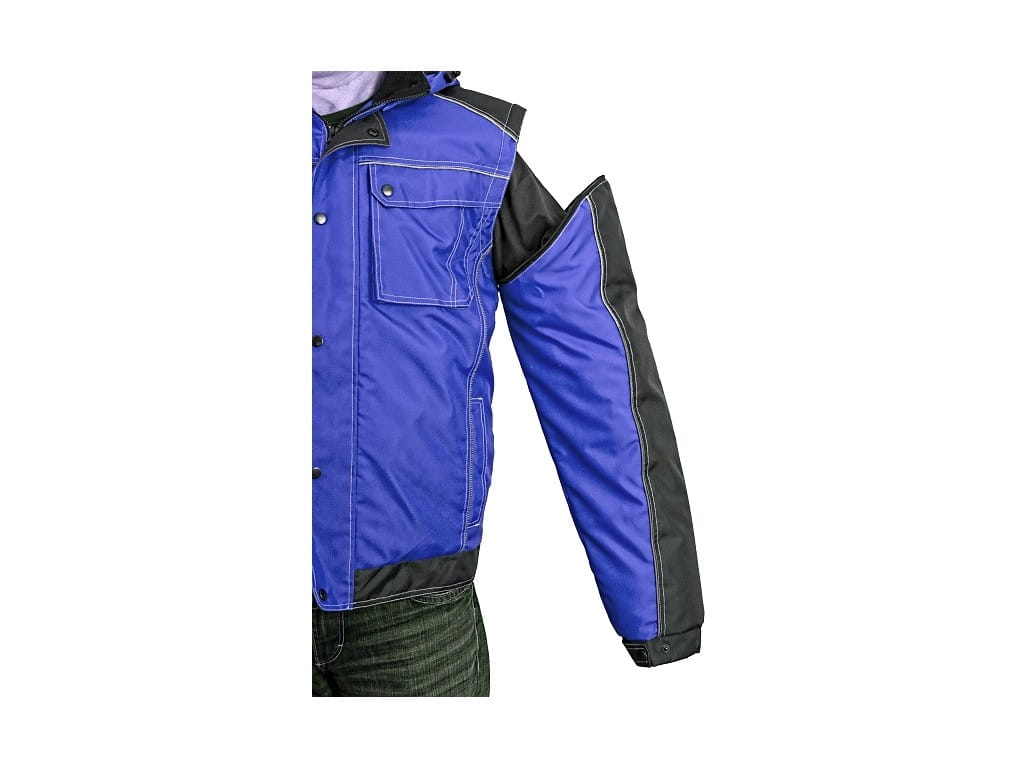 Wysokiej jakości, bardzo wytrzymała zimowa kurtka robocza z odpinanymi rękawami.