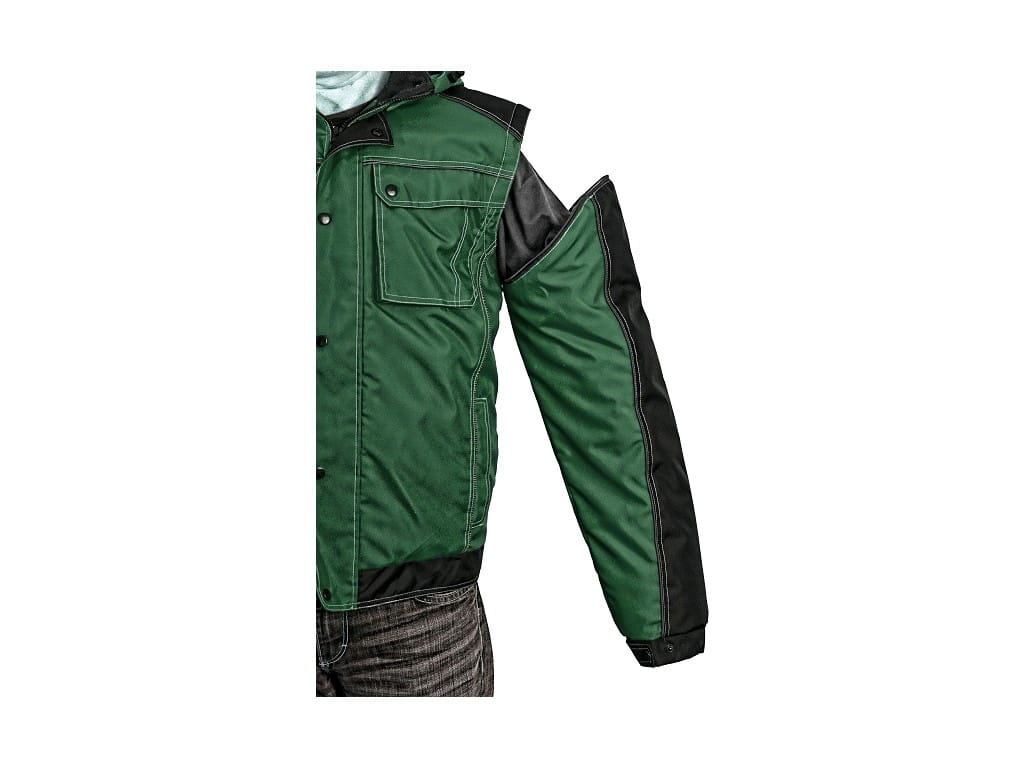 Wysokiej jakości, bardzo wytrzymała zimowa kurtka robocza z odpinanymi rękawami.