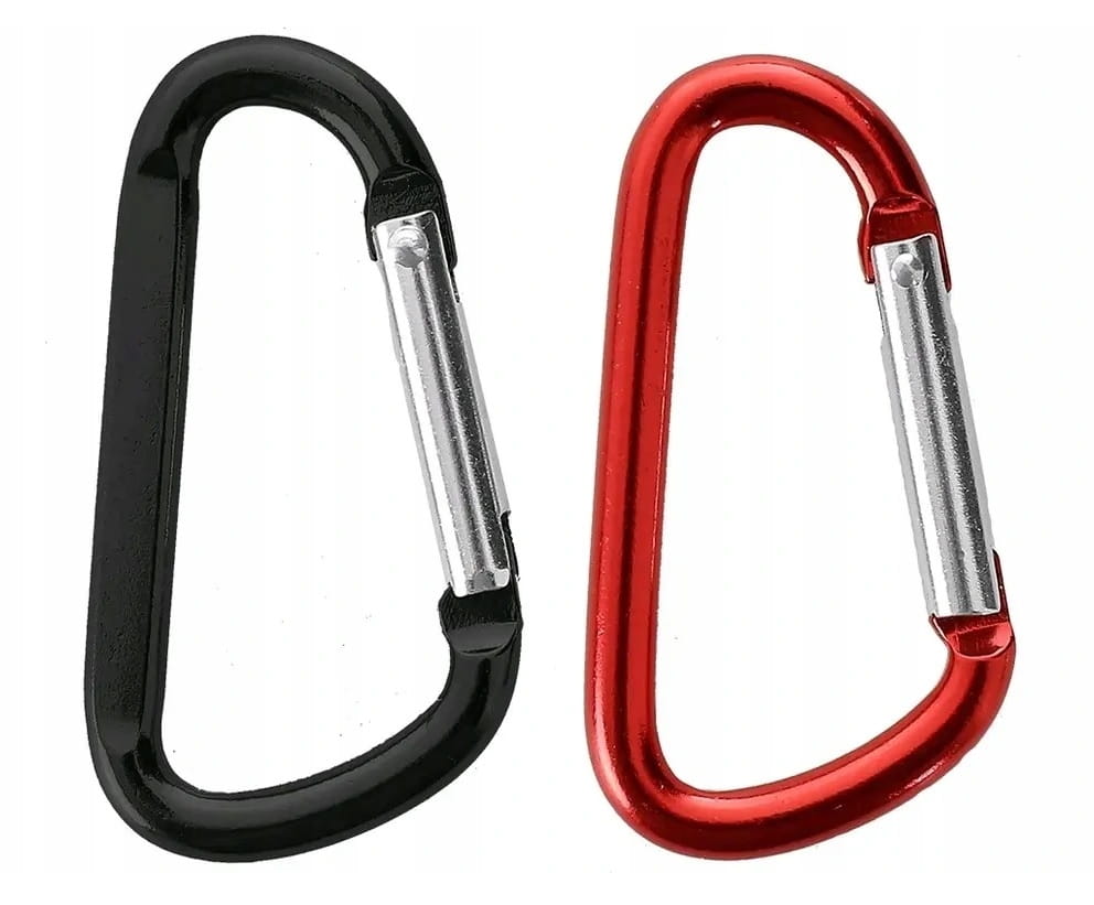 Uniwersalny karabinek aluminiowy, mały, otwór 18mm. Nadaje się do mocowania narzędzi, kluczy, rękawic i innych akcesoriów. To nie jest karabinek bezpieczeństwa (sprzęgła) lub karabinka dla wspinaczy. Dwie sztuki na blistrze, mix kolorów.