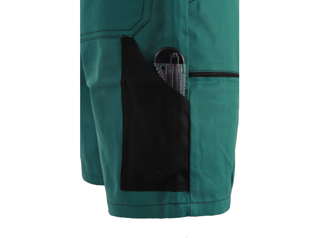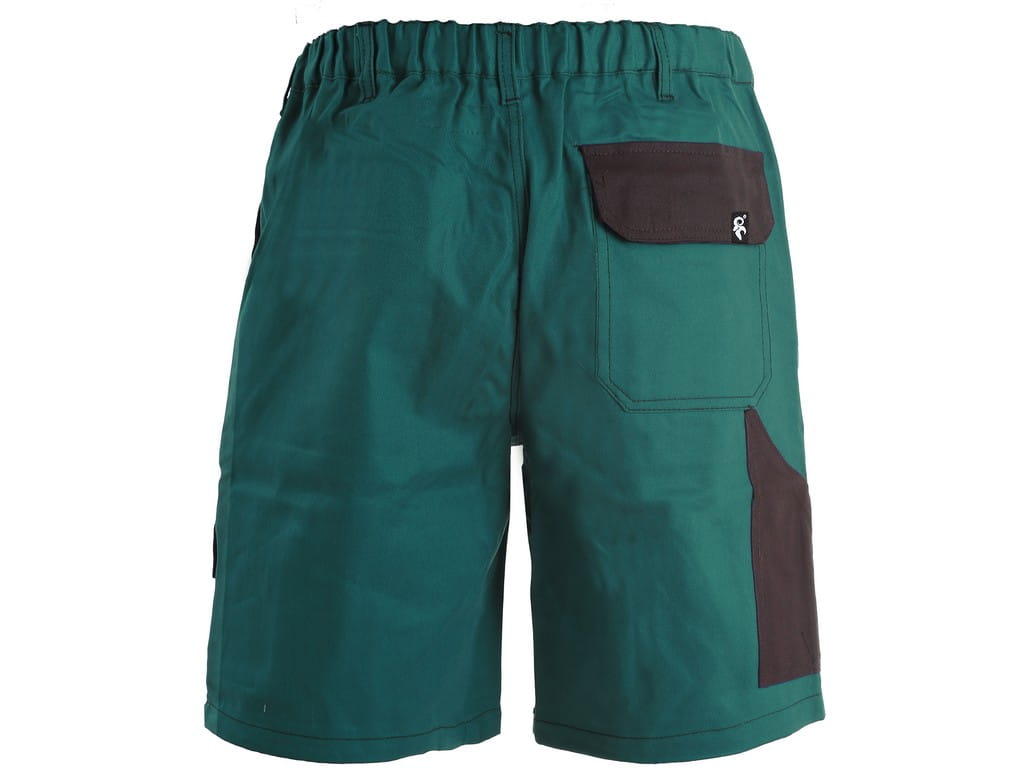 Wysokiej jakości, szorty wykonane w 100% z bawełny o gramaturze 260 g/m2. Spodnie posiadają dwie duże naszyte kieszenie boczne, tylną kieszeń krytą patką zapinaną na rzep, oraz dodatkowe kieszonki na miarkę i komórkę. W tylnej części pasa elastyczna guma zapewniająca komfort użytkowania.
