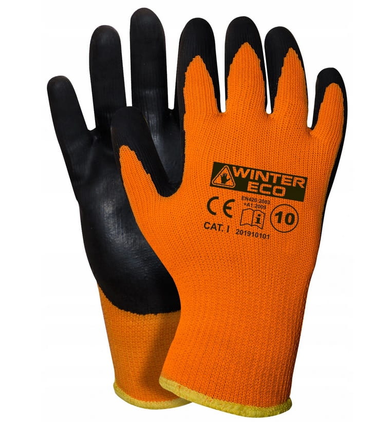 Rękawice robocze ocieplane, zostały wykonane z poliestrowej dzianiny pętelkowej (ścieg 7), zapewniającej komfort użytkowania oraz utrzymującej ciepło dłoni. Powleczone są lateksem o gładkiej strukturze. Idealne do prac w niskiej temperaturze zewnętrznej.